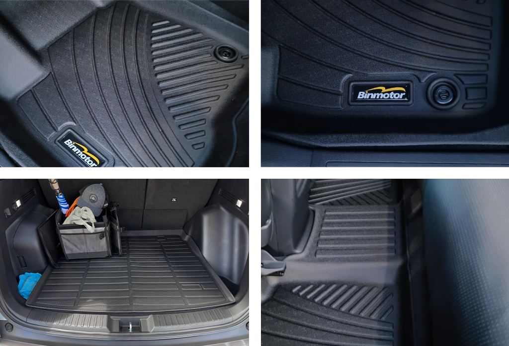 | Binmotor floor mats use laser 3D scanning of the original car chassis data, and customize a complete set of molds for each model,in order to ensure compliance with the vehicle and 100% matching with various models. | The same buckle as the original car will fix the floor liner. Good friction is formed between the floor mat and the body, and there will be no deviation during driving, ensuring you a comfortable foot feeling during driving. | Binmotor floor mats are made of ecofriendly TPE material.Safe,non-toxic,odorless and environmentally friendly,recyclable. |