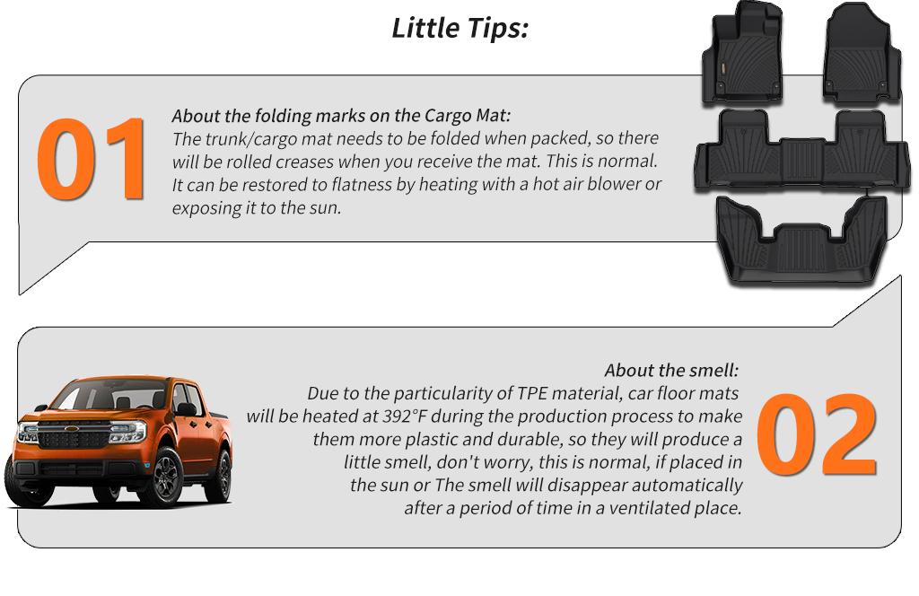 TPE material is long-lasting and durable, healthy, non-toxic, odorless, so your interior won’t take on an unpleasant smell. drop-in installation and easy removal. |