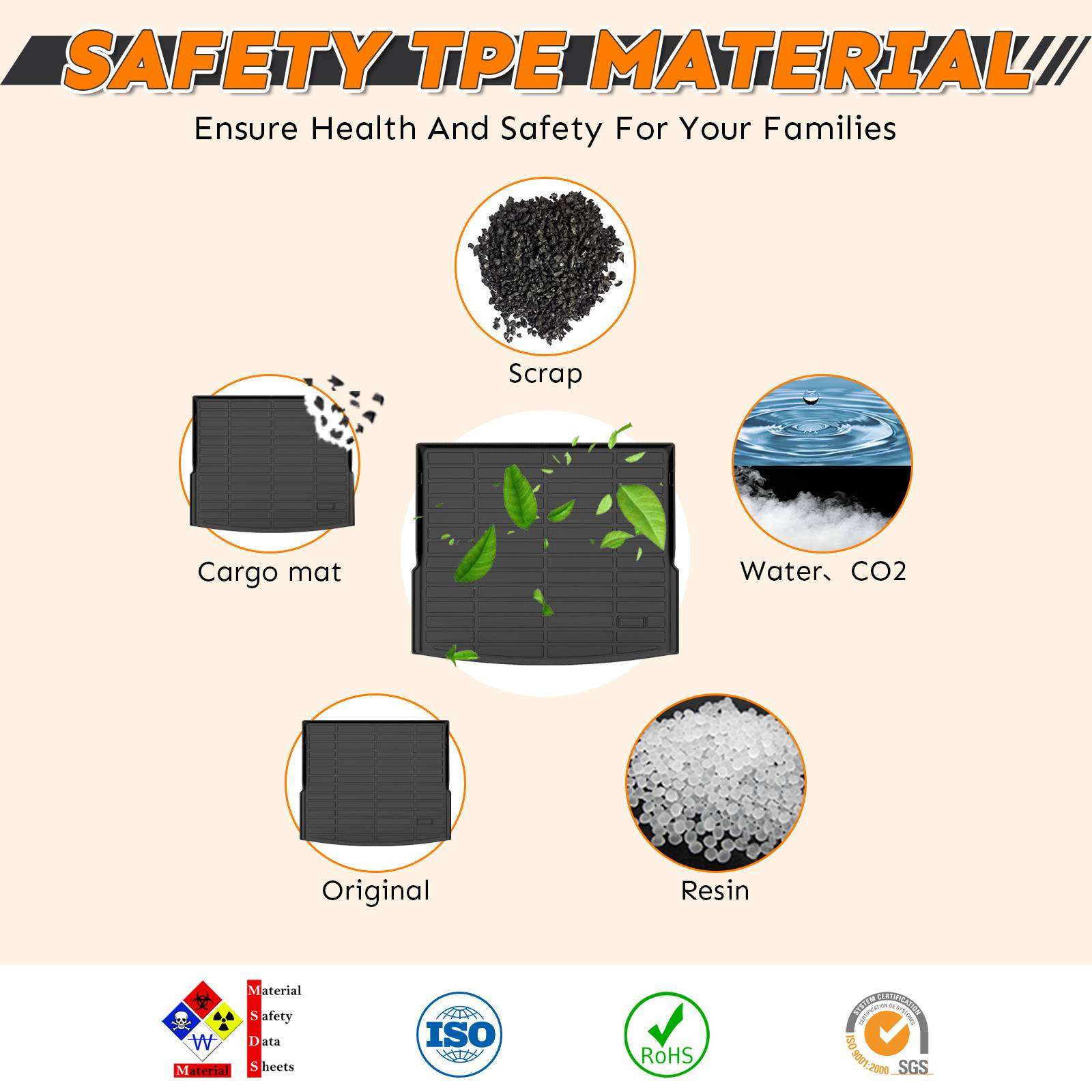 | Binmotor trunk mat use laser 3D scanning of the original car chassis data,and customize a complrte set of molds for each model,in order to ensure compliance with the vehicle and 100% matching with various models. | Binmotor trunk mat are made of eco-friendly TPE material.Safe,non-toxic,odorless and environmentally friendly,recyclable. | TPE cargo mat can be used all-weather. According to experimental tests,they can withstand high and low temperatures (-58°F~167°F),so they can effectively resist extreme heat and extreme cold without deformation. |